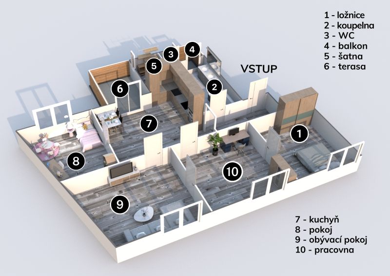 - Pomocí 3D půdorysů ukažte celou dispozici Vaší nemovitosti.